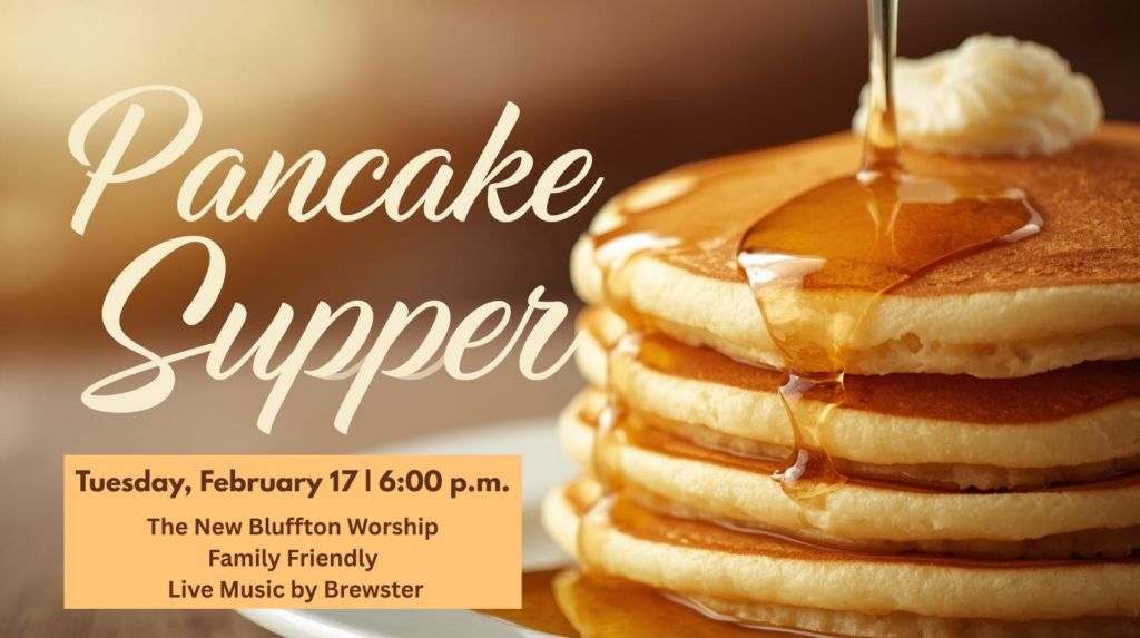 Join us for a family friendly Pancake Supper on Tuesday, February 17 at 6:00 p.m. at The New Bluffton Worship.