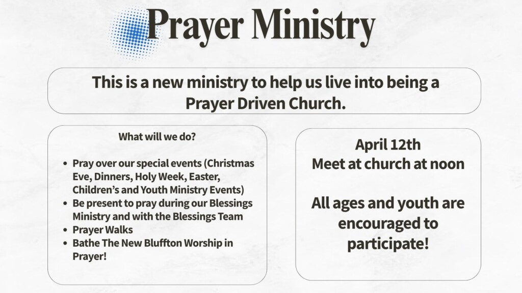 As part of our commitment to being a prayer-driven church, we are launching a new prayer ministry.