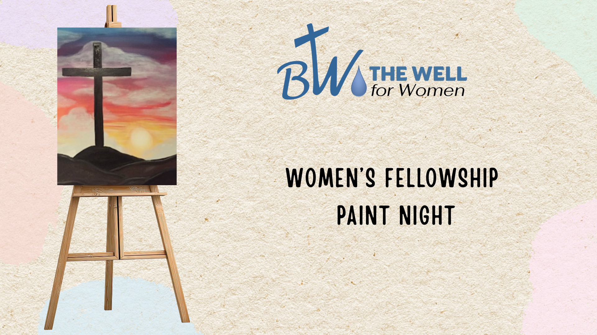 The Well for Women’s will host a Paint Night on Tuesday, March 24 from 6:00 PM to 8:00 PM. This will be a relaxed evening filled with good food, meaningful conversation, and plenty of laughter as we spend time together.