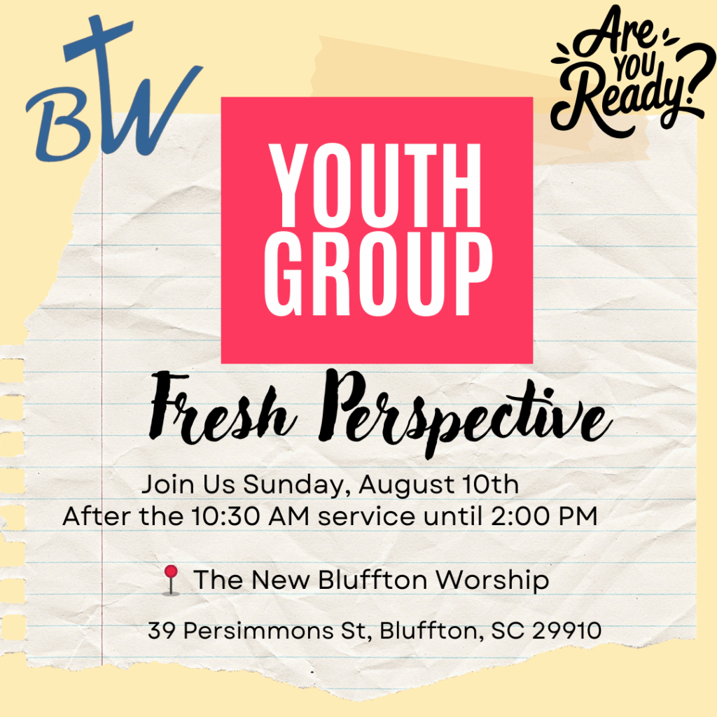 We’re so excited to welcome all middle and high school students to be part of a brand-new season at The New Bluffton Worship! Our Youth Group kicks off this Sunday, August 10, right after the 10:30 a.m. worship service and runs until 2:00 p.m.